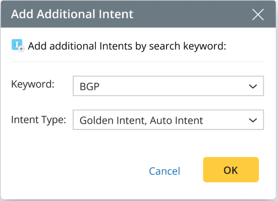 Add Additional Intent (Optional): When enabled, you can select a template variable for dynamically searching additional intents by keyword (intent name or tag) within a specific intent type.