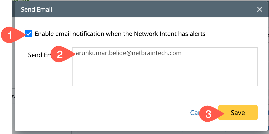 - Check the box to Enable email notification when the Network Intent has alerts.