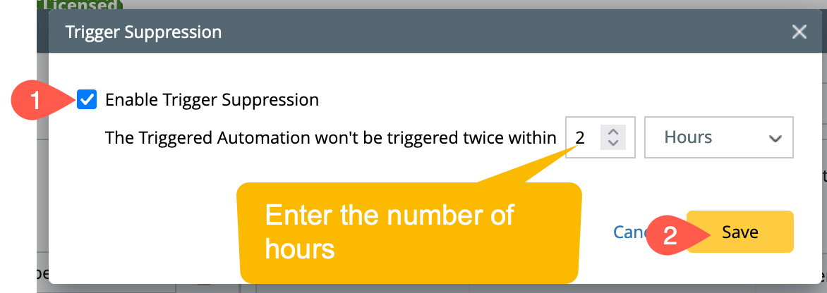 - Tick the check box to Enable Trigger Suppression and manually enter the time.
