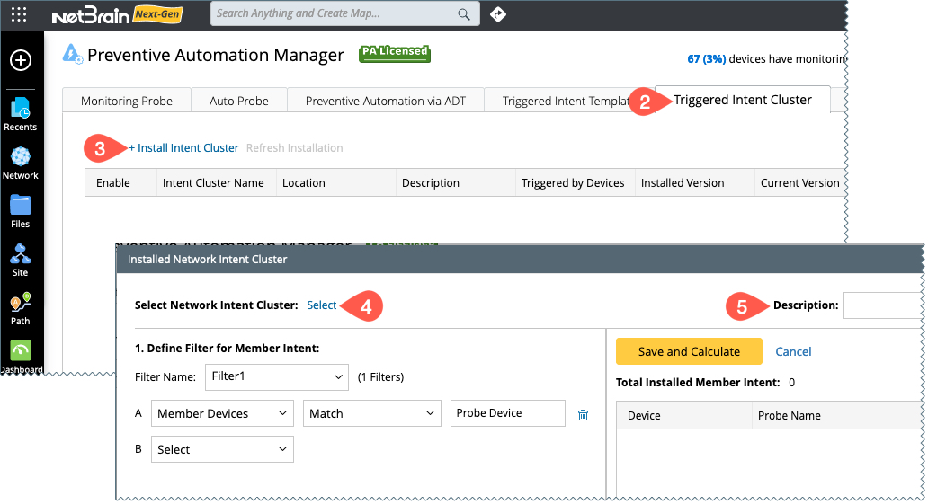 - Click +Install Intent Cluster and the window Installed Network Intent Cluster will appear on screen.