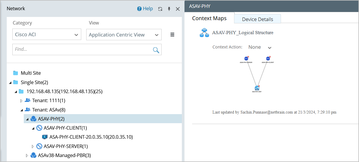 Tip: For more context maps supported under the Application Centric View, see Context Maps for details. |