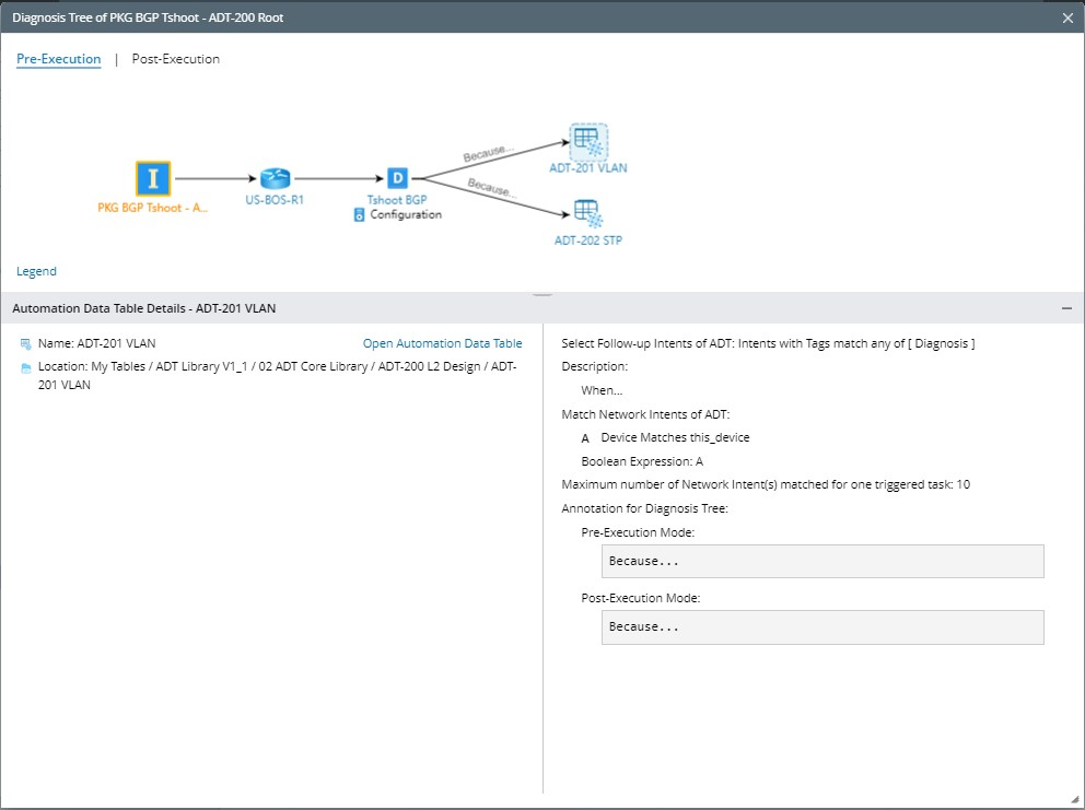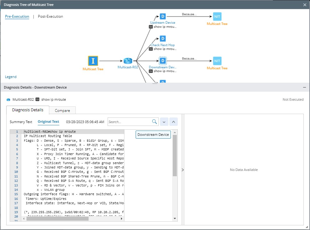 The details pane of the diagnosis node in the pre-execution mode does not show the status code but the diagnosis name. The Diagnosis Logic pane will always show the wording “No Data Available”.