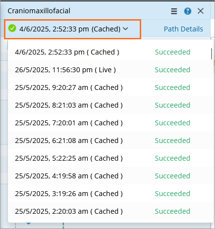 - In the Path Browser, click the number in the History column of the target path entry. A floating box prompts to display all history results of the path by timestamp.