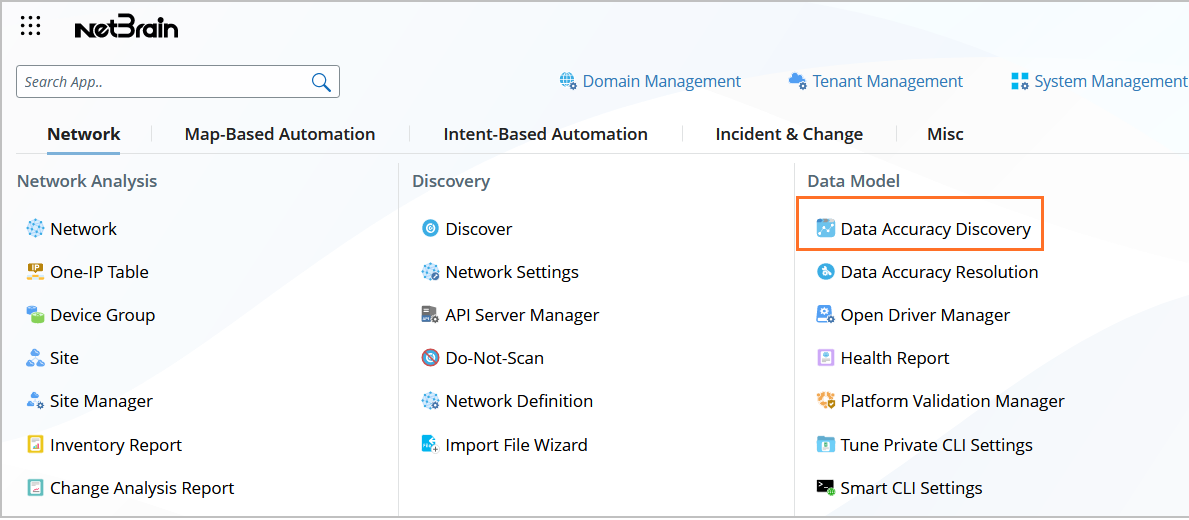 , and select Data Accuracy Discovery to open Data Accuracy Discovery.