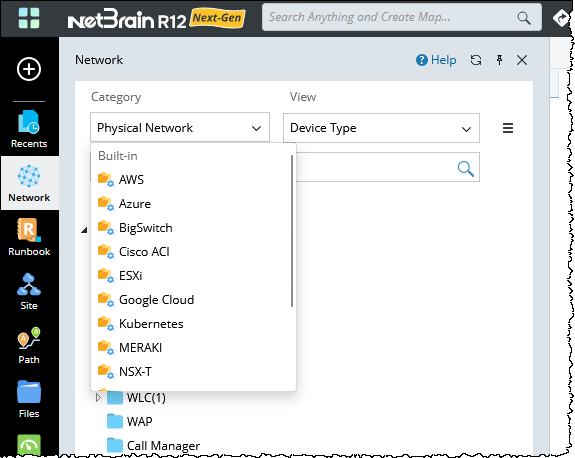 Explore and manage network structures, devices, and topologies using the Network Tree interface.