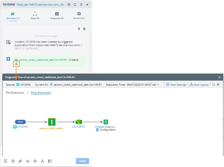 In the incident pane, the entry of the Diagnosis Tree is displayed in the NI diagnosis message. Click it to open the Diagnosis Tree.