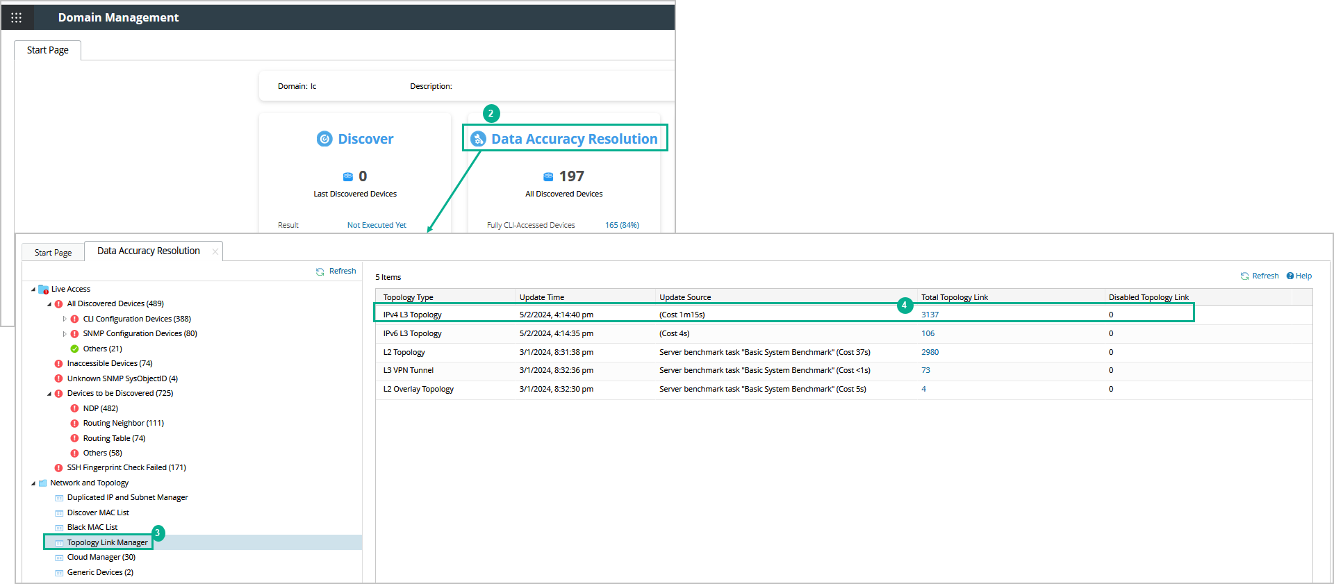 - On the Data Accuracy Resolution tab, click Topology Link Manager on the left pane.