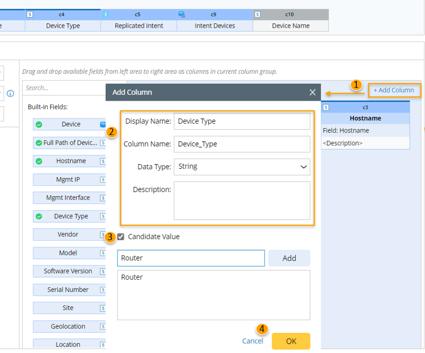 - Select the target ADT in the ADT Manger, then click Add Data Manually > Add Table Column.