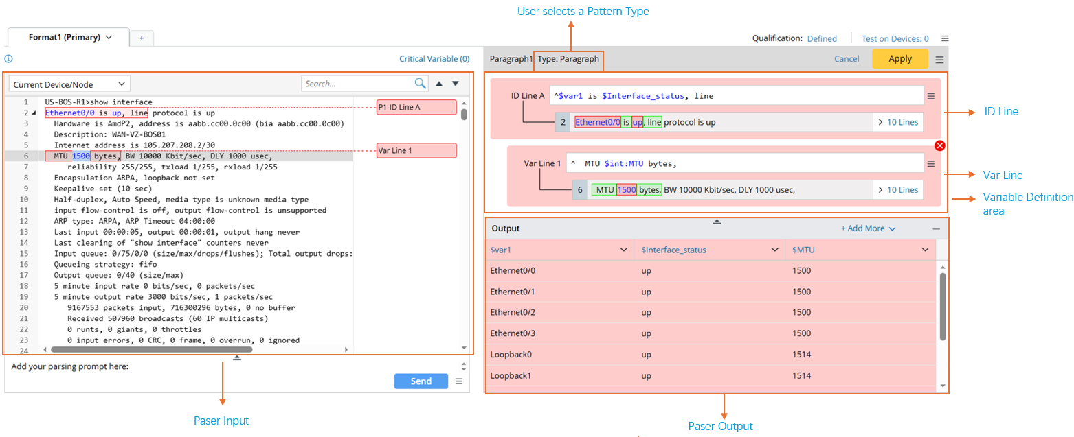 The UI components for add-on parser mode (the UI is a sample paragraph pattern) are shown below: