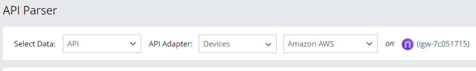 - Select API Adapter as Devices, Amazon AWS, and then select to retrieve data on device igw-7c051715.