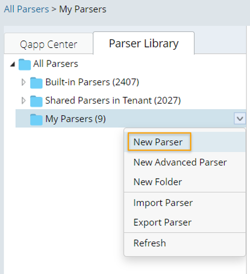 - Create a Parser and Name it (e.g., API Parser).