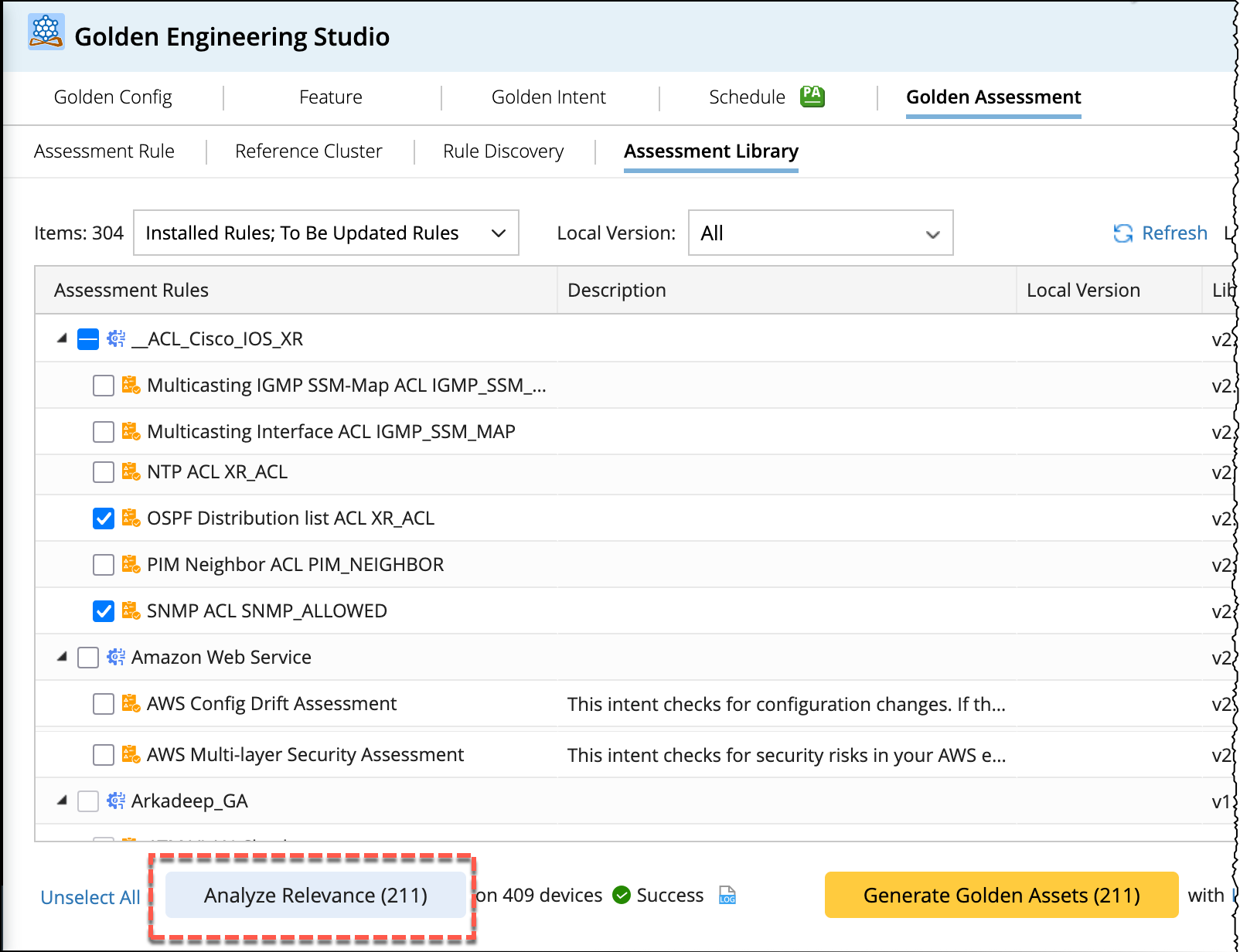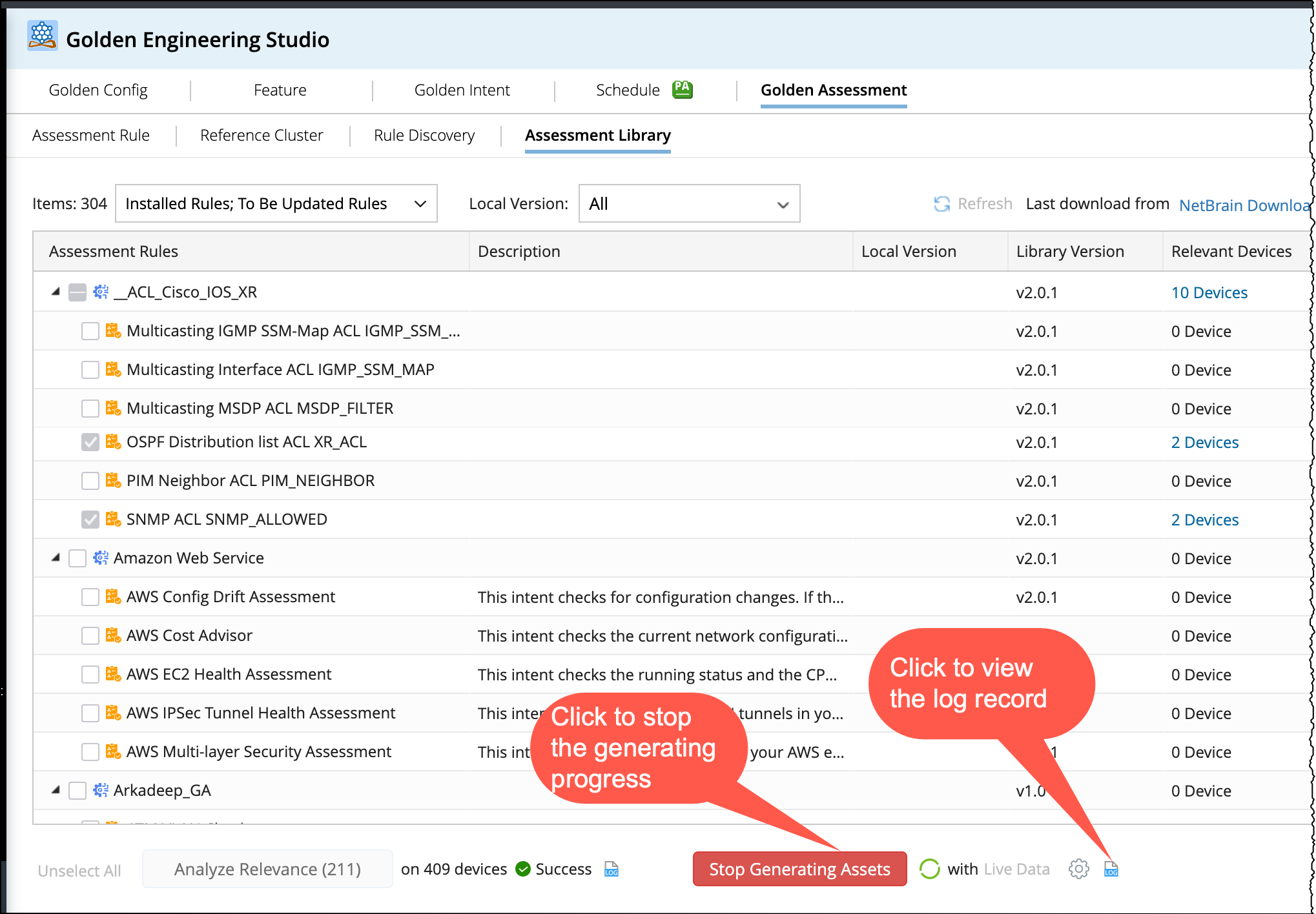 This refinement allows you to more efficiently generate Assessment Features/Rules using devices by clicking Generate Golden Assets.