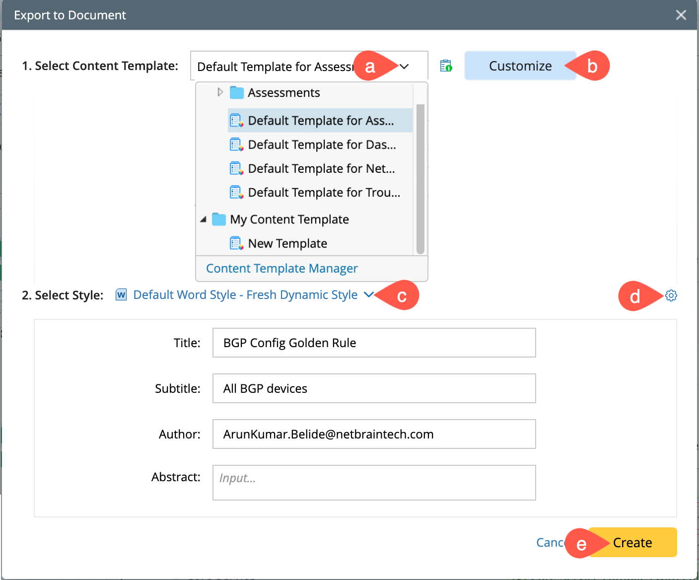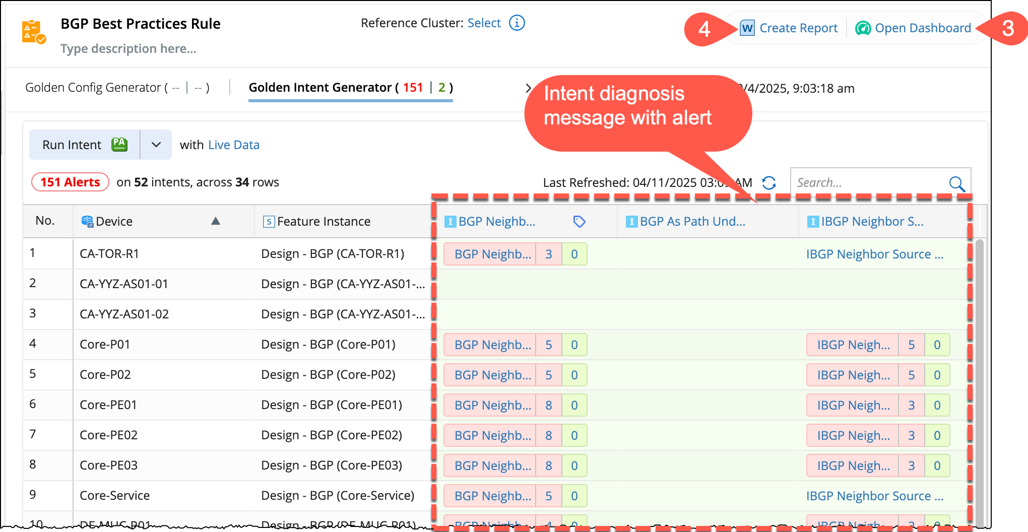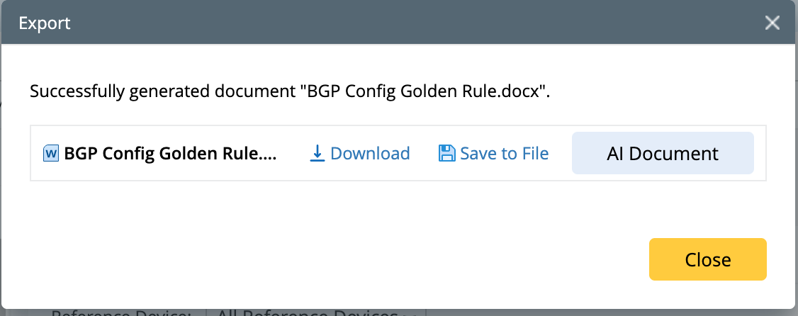- Create Report: Golden Config and Intent execution results can be exported as a Microsoft Word file.