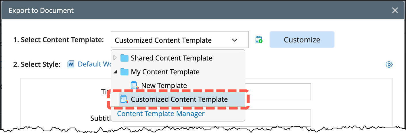 Use the Customize button to modify the selected template. Refer to Content Template Manager for the detailed customization procedure.