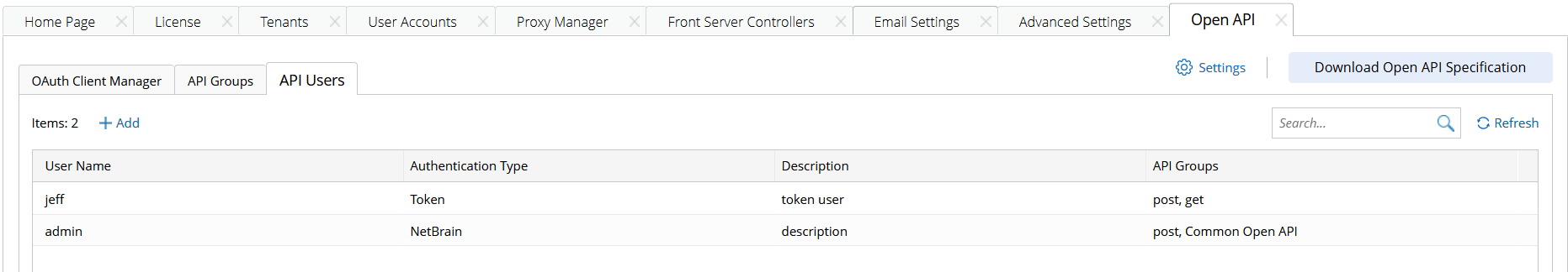 In the API Users tab, you can assign access to multiple API groups to a user. The user then has access only to the APIs included in those assigned groups.