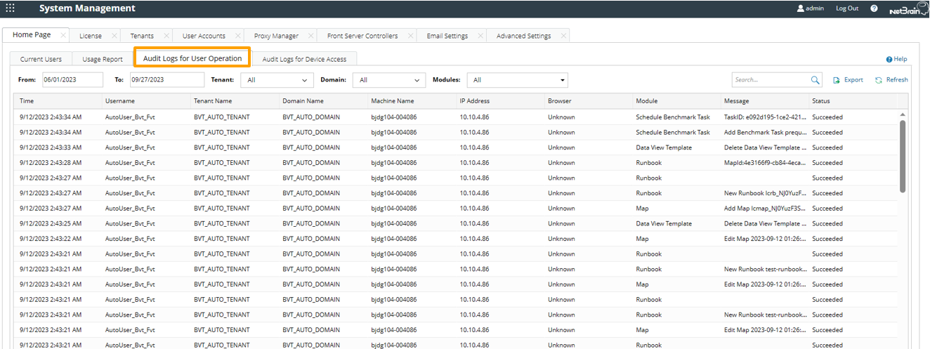 - Go to Home Page > Audit Logs for User Operation to review logs related to user operations.