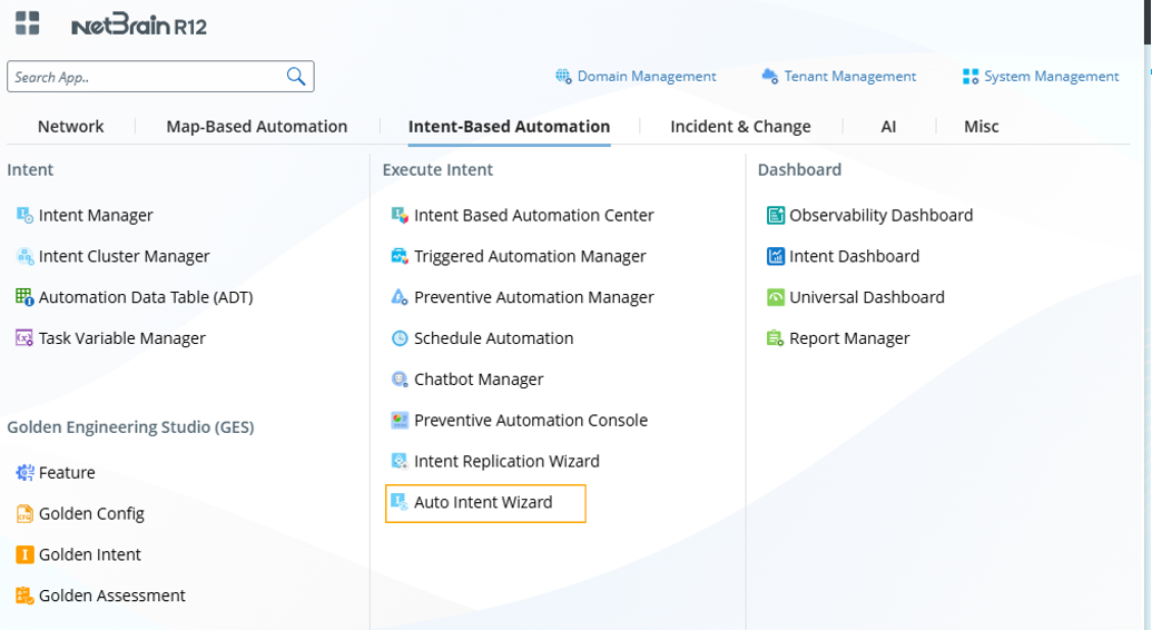The Auto Intent Wizard provides a quick way of enabling an intent template for auto intent for end users. The description for auto intent and the profiles for organizing the auto intent are also defined via Auto Intent wizard.