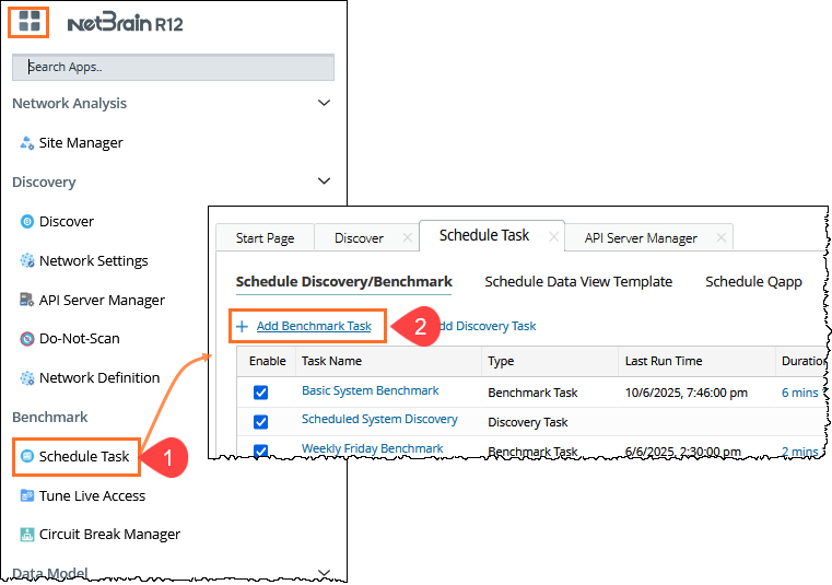 the menu in the Domain Management page and select Schedule Task. - In the Schedule Discovery/Benchmark tab, click Add Benchmark Task.