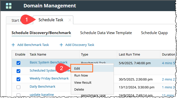 - In the Domain Management page, click Schedule Task on the Start Page tab, and then click Schedule Discovery/Benchmark Task