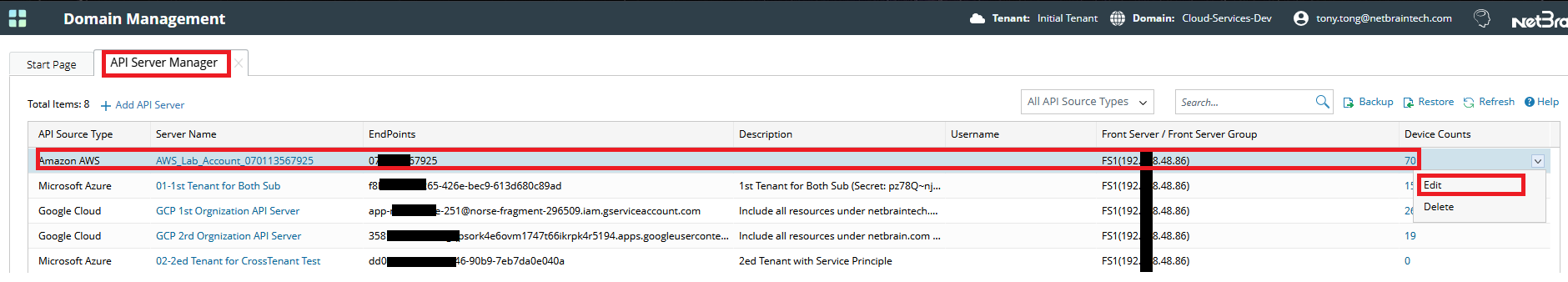 Select the API Server and run the discovery process. Refer to Discover AWS Networks.