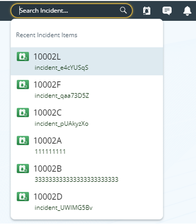 There is a quick entry for searching incidents next to the quick access toolbar, and you can search for Incident here using the ID and subject of the Incident as the search item. Click this entry to see the recent incidents, and select one to open it.