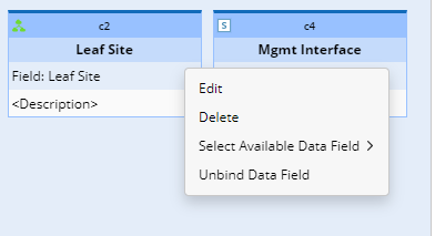 - Mapping Available Fields to the right as base table columns: Drag and drop the available fields (for instance, select the fields Device, Mgmt Interface) to the base table column definition area to create ADT columns automatically. For the Device in Selected Site method, the built-in fields include device property fields and Leaf Site field. Device field is the key field.