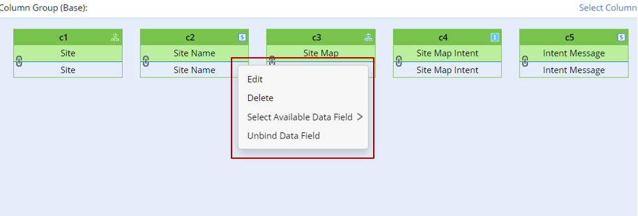 - Mapping available fields to add base table columns: Drag and drop the available fields to the base table column definition area to create ADT columns automatically.