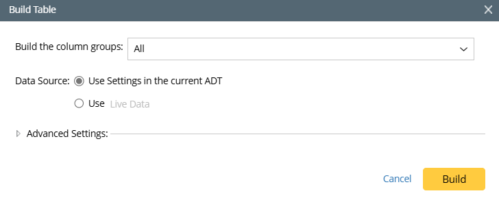 - Click Save and Build to save all the settings and build table data. You can define the build settings.