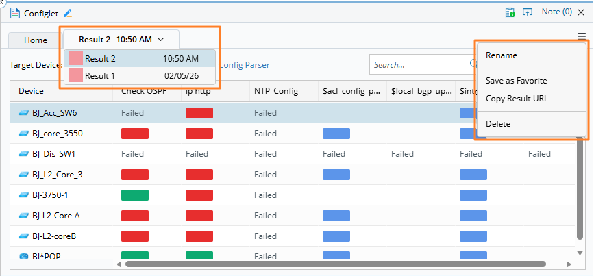 - View Config Parser Variables: Parser variables matched with the current device will be displayed in the Configlet Result Area.