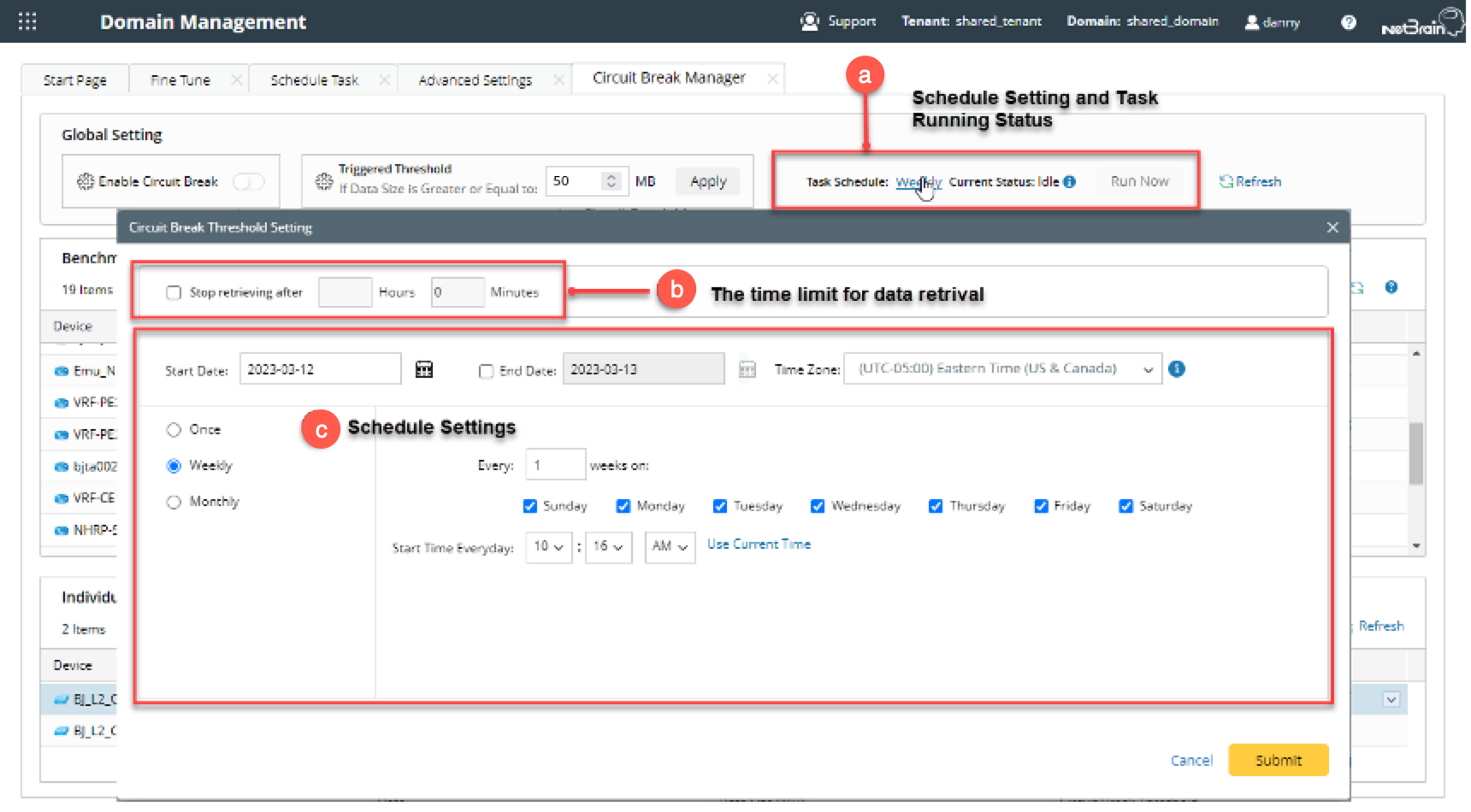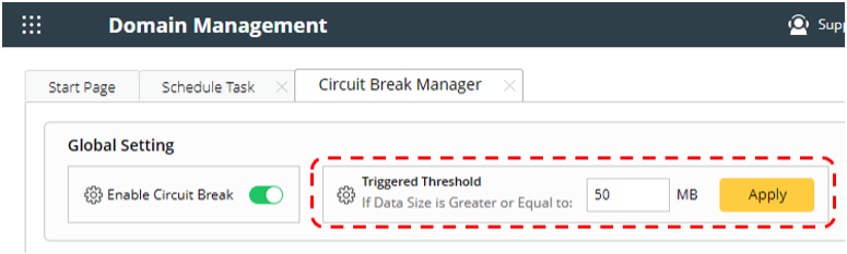The Domain admin can use Circuit Break to detect and record large data items in the regular Benchmark task and move them to the Circuit Break Benchmark automatically for low-frequency data collection, and this will ensure the regular Benchmark operates at a faster pace.