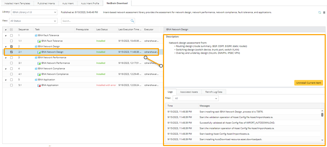 - Retrofit Log/Data: If the ADT has empty cells due to problem during intent replication, the related data and retrofit log is displayed here. For more details on how to use the zip file, refer to Fix Empty Cells with Retrofit File.