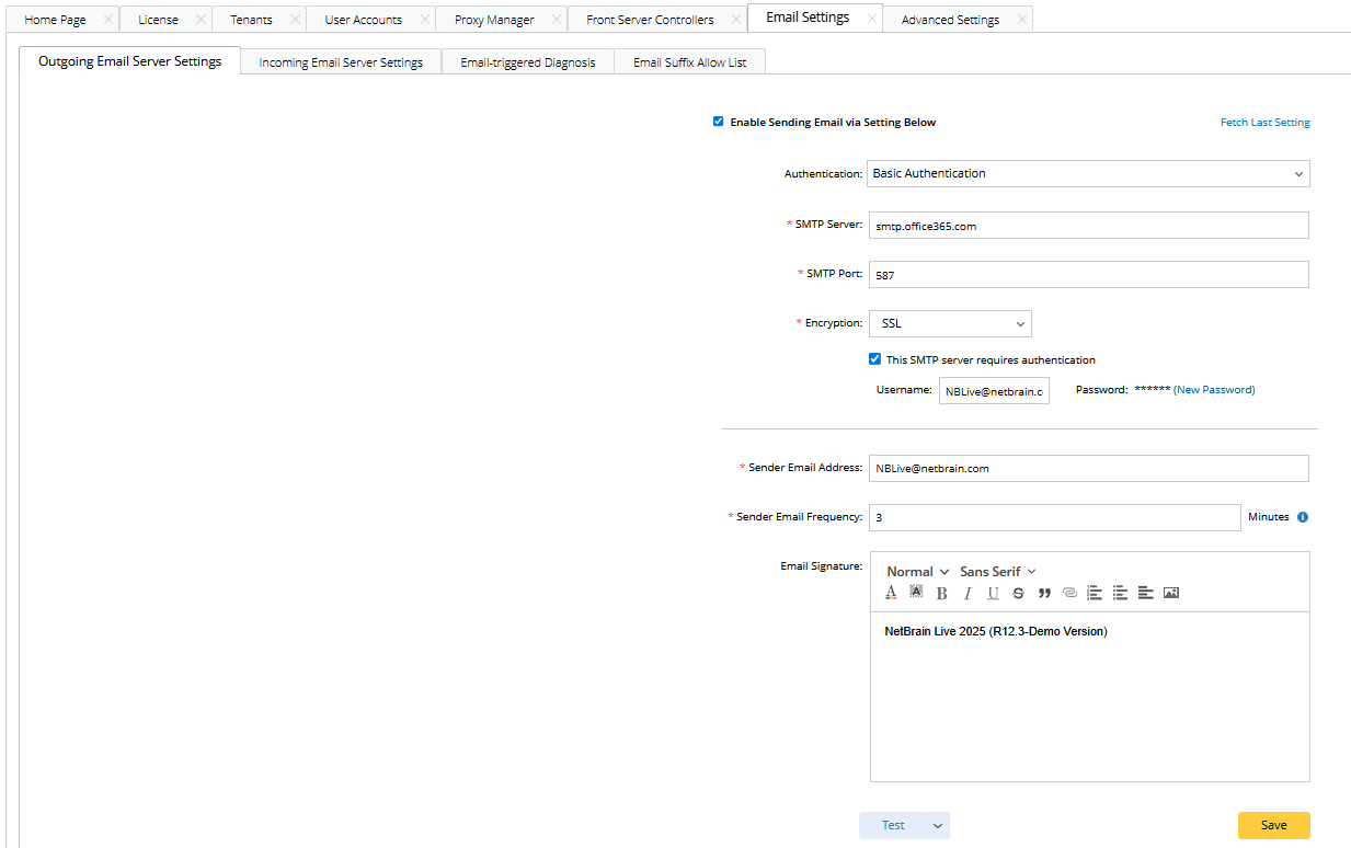 Tip: Before saving the changes, you can click Test to verify whether the settings are valid. |