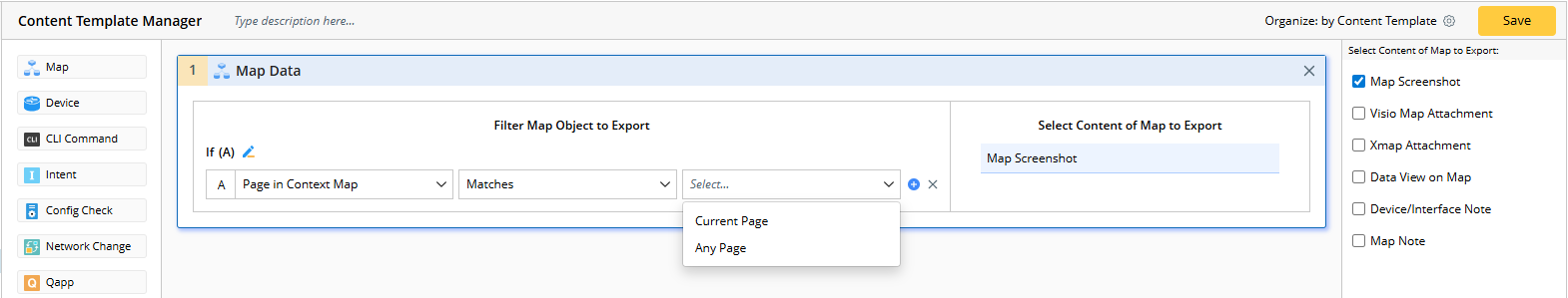 Map: The Map refers to the context map corresponding to the runbook. Select either the Current Page or Any Page. If no condition is defined, the default is set to all pages.