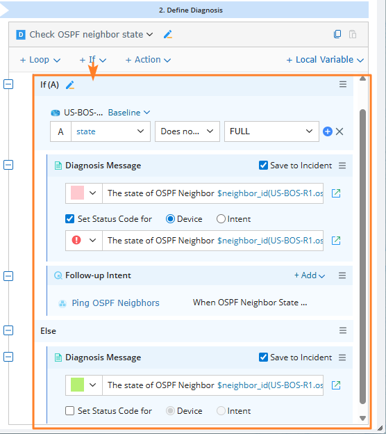 Example: You can use If-Message-Else-Message logic to check the OSPF neighbor state.