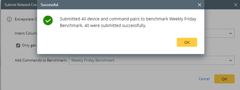 and select the Submit Related Commands to Benchmark from the menu of an intent column.
