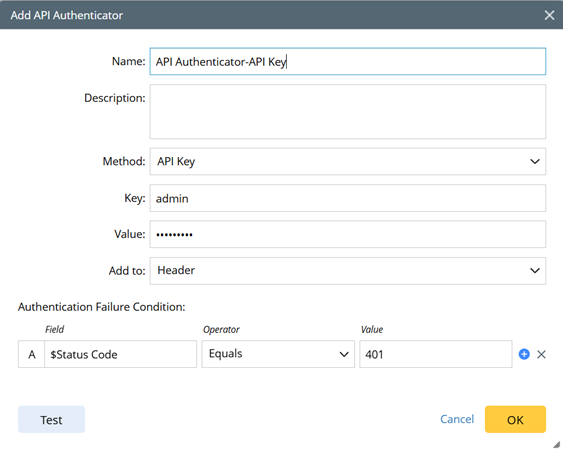 | 1 | API Key | API Key authentication verifies the identity of the requester using API key. The following settings are made to configure an API Authenticator using the API Key method. - Name/Description: Define these basic information