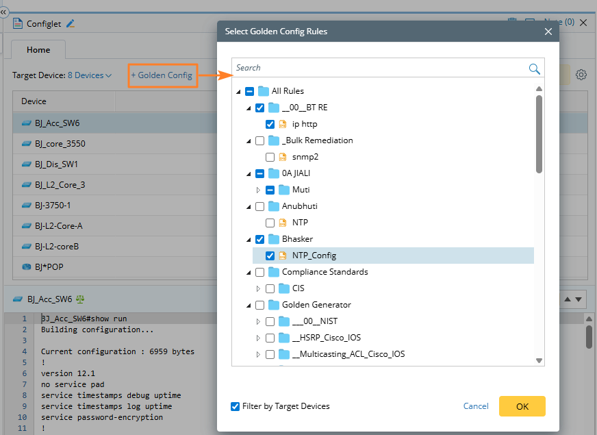 Choose the golden config rules you want to associate with the selected devices.