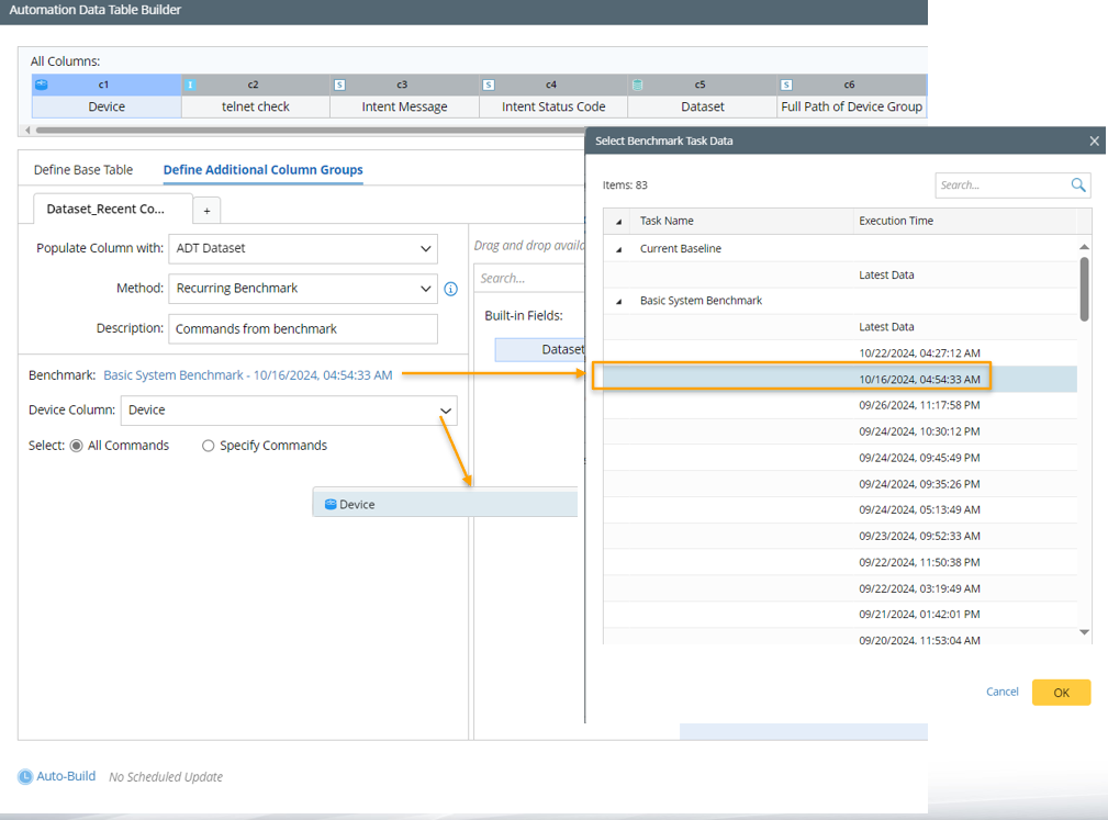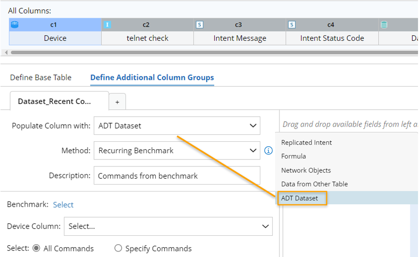 - Device Column: Select a device column already defined in Base Table. The selected device column in ADT will be the device column of this dataset. Only the command data of the devices in the selected column will be added to the dataset.