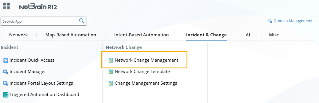 and select Incident & Change > Network Change.