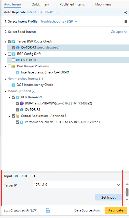![]() | Note: A macro variable is often used in a CLI command in network intent, e.g., show ip route $destination-ip-address. You can enter different destination ip addresses when troubleshooting network issues of different application paths. |