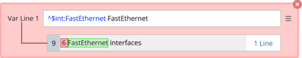 Take the following Paragraph Parser as an example: The parent line pattern contains only a variable for the interface name (note that the space before and after the variable).