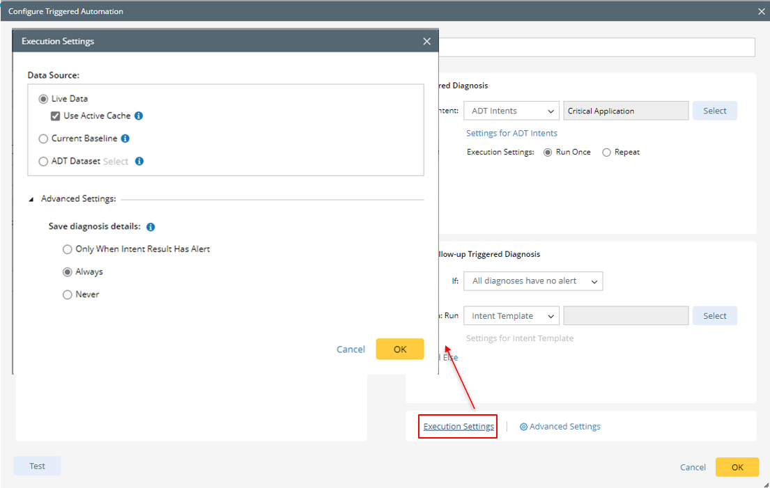 Define Execution Settings for Intent-based Triggered Diagnosis