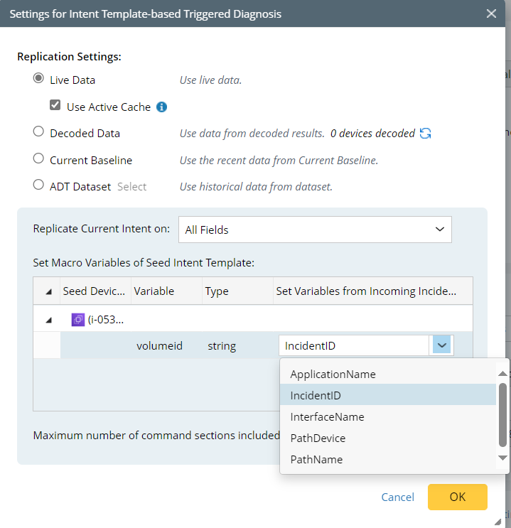 Note: With the Last diagnoses consistently detected no alerts and Last diagnoses consistently detected alerts options, the system can decide whether to run follow-up triggered diagnosis in TAF after running the main triggered diagnoses several times to check whether it has alerts or not.