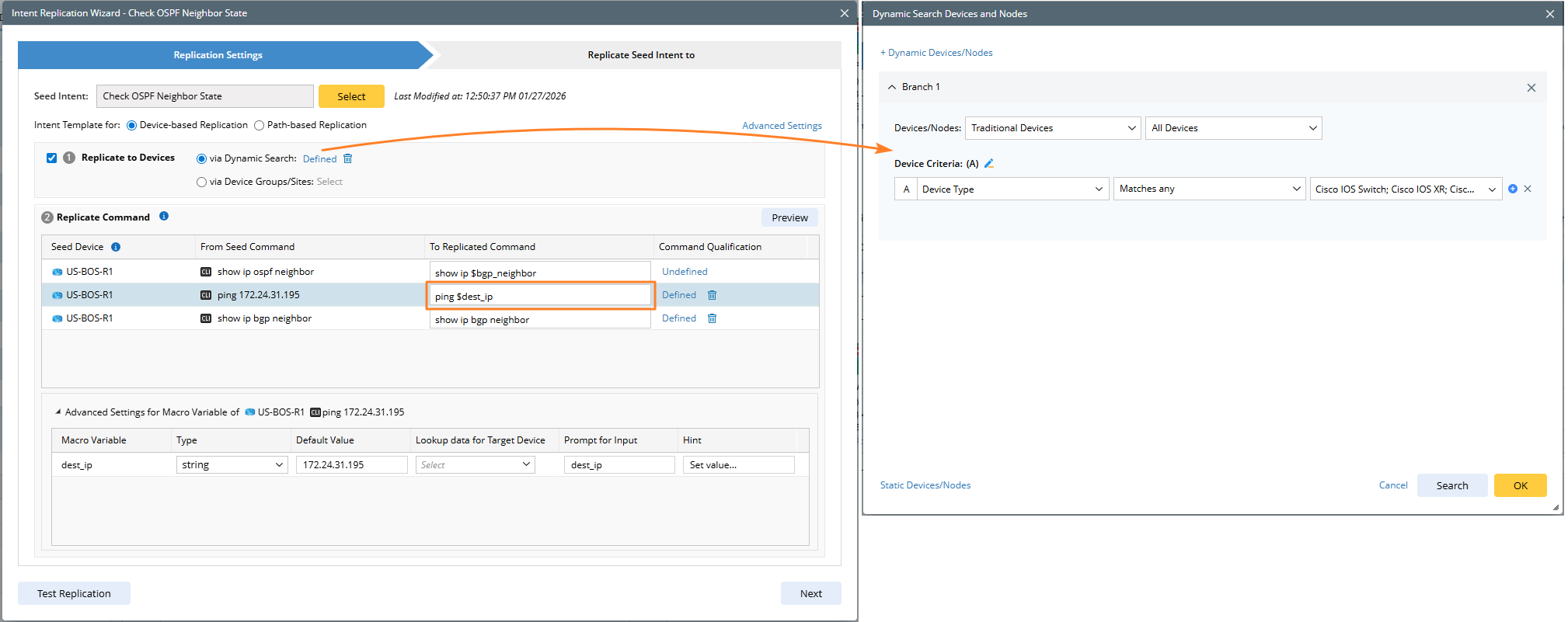 Define the qualified device scope for the seed intent template to replicate intent and configure the macro variable values for replicating ADT intents here. Refer to Intent Replication Logic Settings topic for detailed step-by-step procedure.