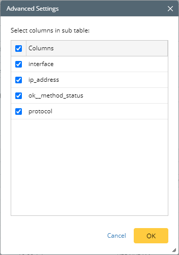 The sub table columns can be set by selecting columns in the Advanced Settings.