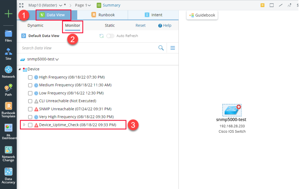 To capture device-level anomalies, such as CPU high, device config change, and BGP neighbor flapping, select Device Level.