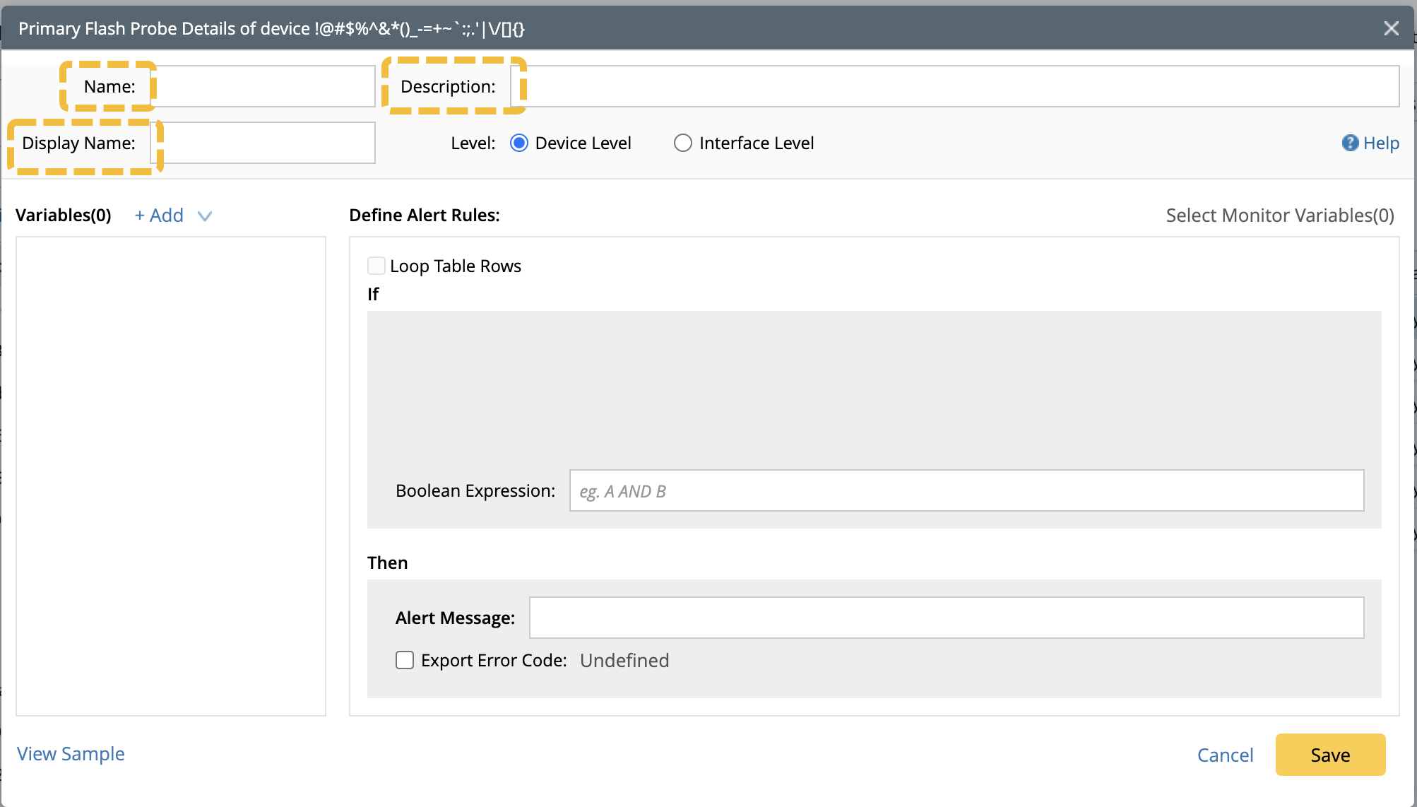 Define the basic information, such as the Name, Display Name and Description of the flash probe.