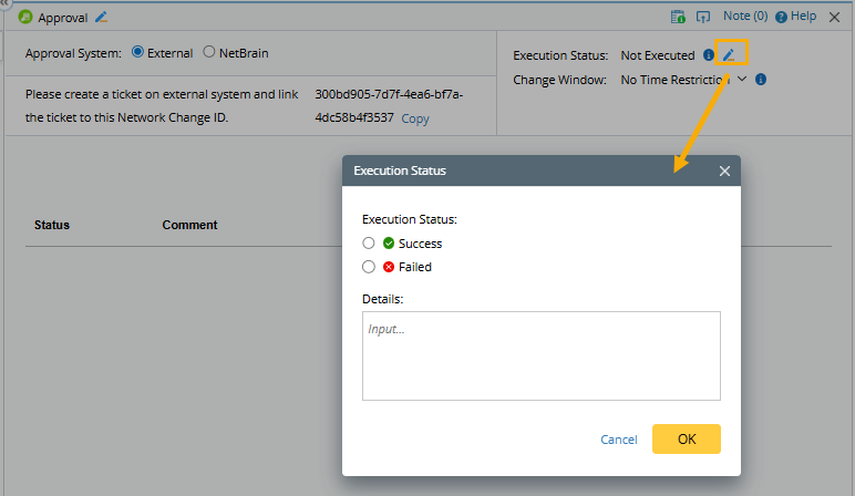 You can view and edit the execution status. Before execution, the status displays Not Executed.