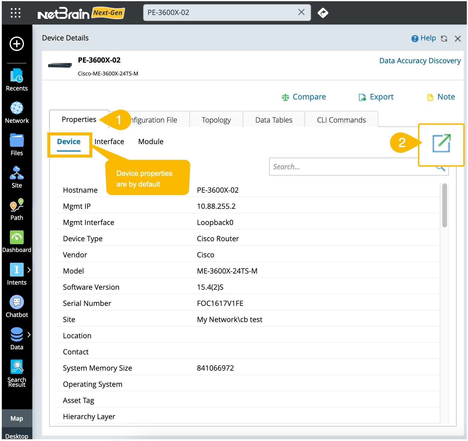 Both built-in and customized device properties are stored in the Global Data Repository. You can browse, modify, and export device properties from the Device Details pane.