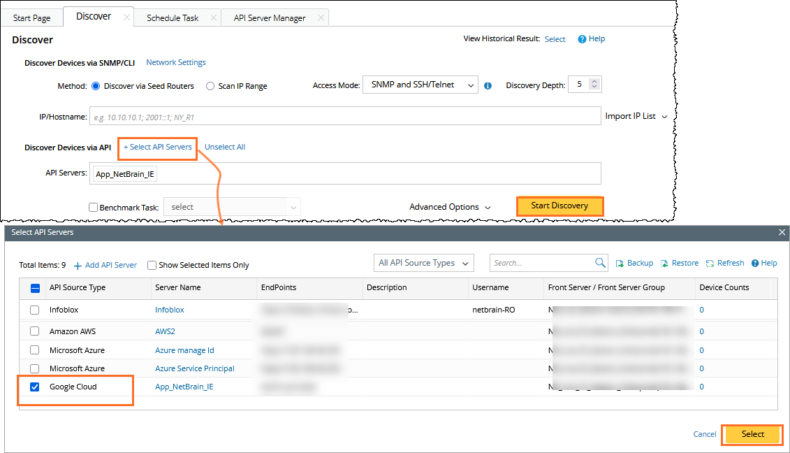 - Click + Select API Servers. Select the GCP API Server that you created.